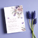 Elegant akvarell fjäril och blommig bröllopsinbjudan.