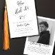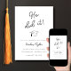 Fira examenstaganden med denna moderna och minimalistiska inbjudan till examensfest! Med en elegant svart-vit design med en stilren handskriven "Han gjorde det" och en handritad examensmössa är denna inbjudan perfekt för att tillkännage din speciella fest. Anpassa enkelt med examenstagandens namn, avgångsklass, evenemangsinformation och ett foto av examenstaganden för att skapa ett unikt minne. Oavsett om det är en avslappnad sammankomst eller en formell tillställning är denna tidlösa design ett sofistikerat sätt att hedra deras prestation.