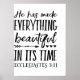 Elegant Calligraphy Stil Scripture Verse Design Emblem i svart med ord, "Han hade gjort allt vackert på sin tid." Bibelversen är 1 John 4:18 ecclesiastes 3:11.