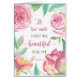 Kort med bibelversa från Ecclesiastes 3:11: "Han har gjort allt vackert på sin tid" omgiven av vackra vattenblommor och löv. Designad genom att helt enkelt skriva skript; teckningar från den Hungriga skriften.