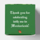 Gröntens fyrkantiga förinställningsruta för klassisk-stil med en vintage Alice i underlandbilden, på framsidan och baksidan av Mad Hatter och March Hare som stuffar Dormus i en tekanna med en vismisk trädgård gräns. Anpassadet på toppen lyder: "Tack för att du firar med mig i Wonderland!" Se matchande favoritpåse, fyrkantig favärde, presentpåsar, kvadratdekal och papper förpackning. Visa hela Wonderland Favor Box-samlingen i SPECIELLA TUUCHES | Avsnittet Party favors.