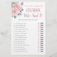 Det här möhippan är ett spel som han sa, hon gissade vem som sa det. Den har vattenfärgad damm av blommor från ro och eucalyptus löv löv. Anpassa kortets baksida med bridens namn. Matchande produkter är tillgängliga.