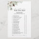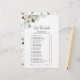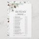 Skratta och tävla i firande med Möhippan "Vem var först?"-spelkort. Med elegant vinter-blommigtar, pinekoner och vintergröna sprickor utmanar detta vackert designade spel gästerna att gissa vem som gjorde det först - bruden eller brudgummen. Med en ren och välorganiserad layout är det enkelt att spela och ha perfekt för att bryta isen vid möhippor, förlovningsfester eller pars evenemang. Yrkesmässigt utskriven med TrueMatch™ Färg-teknik för att säkerställa skarp och levande information som fungerar smidigt i Möhippans övriga pappersserie. Copyright Anastasia Surridge, alla höger reserverade.