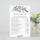 Lavender möhippa-spel. Denna utformning har en vattenfärgad illustration av lila lavender-blommor och eukalyptus-blad.