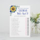 Det här möhippan är ett spel som han sa, hon gissade vem som sa det. Den har vattenfärgade solblommor och blå blommor från ro med blad och geometrisk utformning på baksidan. Anpassa kortets baksida med bridens namn. Matchande produkter är tillgängliga.