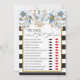 Han sa Hon sa Brud Groom Bröllopsfest spel BRUD ELLER BRUDGUM / HAN SA HON SA Feminint bröllopsfestspel med realistisk vit & blå blommig design, guldglitterram, svarta & vita ränder. Vänligen se även vår matchande Bröllopsinbjudan.