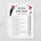 Vi presenterar vårt moderna och roliga spelkort He Said She Said, perfekt för ett Wine Bridal Shower-tema. Med sin eleganta burgunderdesign lägger detta spel en touch av sofistikering till din fest, oavsett om det är en bröllopsfest, möhippa eller bröllopsevenemang. Gör dig redo att spela och skratta med dina gäster medan ni njuter av vinet före bröllopslöftena med detta underhållande spel. Dessutom kan alla texter anpassas för att passa din personliga stil och evenemangets detaljer!