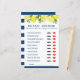 Sätt dina gästers detektivkompetens på provet med den här lättskrämda han sa/hon sa att möhippa spelar! Gästerna gissar vem som sa vad - var det bruden eller brudgummen? Från "Jag tog första steget" till "Jag tar längre tid för att få redo" är det här spelet alltid bra för skratt och överraskningar. Det här utskrivbara spelkortet är formaterat för att matcha ditt vanliga citrontema för färsk och roligt och innehåller fet och ren, citrusinspirerad design. Det är perfektens sätt att få gästerna insatta och gnista konversationer oavsett möhippa eller brunch.