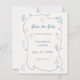 A hand drawn style wedding invitation with beach, coastal theme. A soft ivory colored background, dusty coastal blue elements. Personalize and add your names and the details.