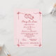 Hand-Drawn “Berry In Love” Coquette Bridal Shower Invitation with scannable QR Code — a charming and romantic design featuring playful line-art strawberries and a delicate coquette bow frame, all set against a sweet pink and red color palette. This minimalist, sketch-style invitation blends whimsical hand-drawn artwork with quirky, slightly funky lettering to create a modern meets cottagecore aesthetic that feels effortlessly cute, feminine, and unique.