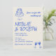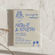 This wedding invitation is perfect for your wedding, if you are looking for an elegant unique and easy editable invitation .An elegant unique simple cream and blue wedding template invitation. Which features plain cream background. And blue hand written bride's and groom's first names. With hand drawn quirky illustrated wedding bows cake and wine glasses. And editable info with trying the knot saying on the back with customizable photo on the back . Affordable and it is also digital electronic e-invitation if you want to send it by text or email. All the info are customizable by clicking on the personalize button. So Grab it and make it yours so you make you invites engaged and excited .