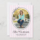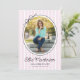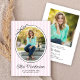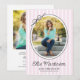 This modern graduation party invitation highlights an oval photo framed by a simple black border and finished with a charming hand-drawn bow. The design is set against a backdrop of soft light pink vertical stripes, creating a fresh and classic look. The backside offers space for a second photo and custom text for your party invite details.