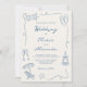 Hand Drawn Coastal Beach Dusty Blue Ivory Wedding Inbjudningar