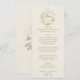 A colorful retro funky modern pink blue yellow floral wreath wedding dinner menu. Which features chic template design of boho vintage cream background on the front and back. With green whimsical typography. Perfect and matching with the whole suite.