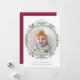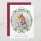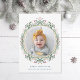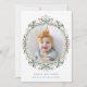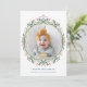 Hand plockade-blomman inspirerade till en utandning med ett centralt foto på vitt; anpassningsbar hälsning med familj namn och år och ett valfritt meddelande på baksidan.