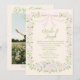 Hand Drawn Green Pink Bow Floral Summer Wedding Inbjudningar