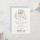 The palette features dusty blue, blush pink, pale yellow, and warm peach... The bows can be removed, and the floral vase illustration can be repositioned to the center or bottom. The front background is a soft ivory and the back a gentle dusty blue — both fully customizable in the editing tool.