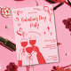 Hand Drawn Pink Red Galentine's Day Cocktail Party Inbjudningar
