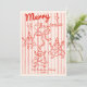 If you are looking for a unique elegant and easy editable non photo Christmas card. This one is perfect for you. And as you see, the design features a red hand made and drawn three funny fun Christmas trees and bow, With whimsical red hand written typography of MERRY CHRISTMAS. All on light watercolor red stripes. And your family name and year at the bottom. And In the back you got a a customizable Christmas greeting paragraph and a bow.