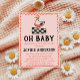Celebrate the upcoming arrival with this charming rustic baby shower invitation featuring a hand-drawn goose illustration and playful “Oh Baby” typography. Designed with a farmhouse-inspired aesthetic, this invitation combines a classic black-and-white checkered pattern with soft coral accents and a whimsical scalloped border—perfect for a cozy, countryside-themed baby shower.