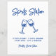 Designed in a cheerful blue-and-white palette with hand-drawn clinking wine glasses and an easy spritz recipe, this sign is perfect for guiding guests to your signature drink station while keeping the look fresh, modern, and relaxed.