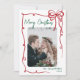 Send holiday cheer with this vertical Christmas card design. The front features a vertical photo in the center, framed by a swirling ribbon-style doodle border in a mix of red and green for a festive touch. A sweet hand-drawn coquette bow sits in the top right corner in coordinating holiday colors, while “Merry Christmas” appears at the top left in blended red and green script. The bottom right includes space for your family’s last name or individual names in matching seasonal tones. The background stays clean and white so the colorful details stand out.