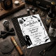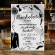 Celebrate the groom-to-be in sophisticated style with this classic black and white bachelor party invitation. This design features whimsical hand-drawn elements, perfectly suited for a memorable guys' night: a bow tie, pocket watch, twinkling stars, and a pour of beer. Perfect for a dapper cocktail evening, a cigar bar celebration, or a classic night out. The typography is a clean mix of modern script and masculine sans-serif. This invitation sets a fun, yet refined tone for the guest of honor.