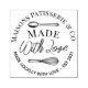 Add a charming, professional touch to your bakery packaging with this Hand Drawn Whisk Spoon Made With Love Bakery Rubber Stamp. Featuring our signature hand-drawn whisk and spoon illustrations with the words “Made With Love” elegantly displayed between them, this stamp creates a classic crest-style design with customizable text along the top and bottom arches, allowing you to add your bakery name, tagline, or slogan. Perfect for stamping bakery boxes, pastry bags, gift wrap, thank-you cards, or product labels, this stamp is ideal for cupcake shops, patisseries, cake designers, pastry chefs, cafés, boutique bakeries, and home bakers. Crafted for repeated use, this versatile branding tool helps your business leave a lasting, personalized impression on every order, combining elegance with a handmade, artisanal feel. Design and hand-drawn illustration by © Moodthology Papery