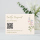A unique and elegant colorful retro wildflowers wedding rsvp card. That as you see has a vintage modern cream background with green funky hand written script. And hand drawn pink, yellow, blue, purple and green pastel colors flowers. With customizable scannable QR code on the front. It is all editable by clicking on the personalize button.