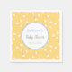 This napkin features hand illustrated assorted ducks on a yellow background. Perfect for baby showers, kid's birthdays, duck themed events. We have this design in blue and pink too, please check out our store. You can personalize the text and date with your own on the napkin or remove any of the text. Customizable to your liking.
