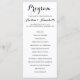 Detta enkla program i elegant personligt bröllp innehåller en handskriven stil från kalligrafi som kommer att komplettera ett bröllop eller ett evenemang av vilket tema som helst. Du kan inte gå fel med den här eleganten, underskattat bröllopsprogram. Anpassa bakgrunden till färg för att matcha vilket tema som helst, eller fäst med klassiskt vitt.