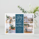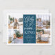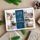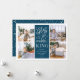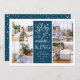 Modern typografi-baserad helgdag-fotokort innehåller fyra av dina favoritfoton i fyrkantigt format, där "Glory to the newborn kung" är centrerat i vit handskriven stil-typografi. Anpassa med din familj namn, namn och/eller ditt anpassningsbar julbudskap. Kort bakåt till en mönster av vit snö och stjärnor på en rik mörk teal blue bakgrund.
