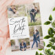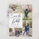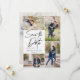 Ta din 5 bästa bilder från förlovningens fotosession med 4 för framsidan och en för baksidan. Den har en handskriftssymbol som säger Spara datumet.