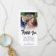 Fotokortets personlig med ditt eget bröllop-foto. Tack för att du skrev i ett snyggt, fetstilt, svart penselskript med ett nyktert utseende. Anpassa med en anteckning till gästerna i bröllop och till namn. Kant mellan fotot och text från bröllop mjukas upp med en vit övertoning.