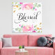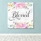Elegantens utformning med mjuka vattenfärgblommor i rosa med grön och handritad manustypografi "Blsed". Den vackra accenten för ditt hem är personlig med ditt namn och din dejt. Matchande "tro"- och "tro"-artiklar tillgängliga. Perfekt för sovrum eller bostadsområde, gör en underbar gåva! Design ©Rosalind Moore, Cherry Lane Designs.