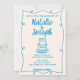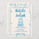 Hand plockade Blue Quirky Cake Minimal Ram Bröllop Inbjudningar