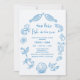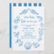 Hand plockade Blue Two Fish Par Inbjudningskort för möhippan Hand plockade 2 mindre fisk i par duschinbjudan med två fiskar, ett hjärta och olika hav skapar och snäckor. De här två mindre fiskarna i inbjudan till havet är idealiska för någon som tittar en söt och enkel duschinbjudan till hand plockade par.