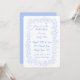 Fira den brud som ska finnas i stil med eleganten blå och vit inbjudningskort för möhippan, med ett ömtåligt botaniskt gräns och ett handskrivet manus. Perfekt för en vår- eller sommardusch blandar den här tidslösa designen mjuk vattenfärgsblad med romantisk charm och anger tonen för en glatt och intim sammankomst. Anpassade med din händelseinformation är den här blommigten möhippa inbjudan perfekt för klassisk, rustik eller trädgårdskrävande firande. Anpassa den enkelt till din speciella dag - underbart för möhippor, brunnar eller te party som hedrar bruden. Ett vackert val för din möhippa.