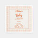 Som du ser har napkin för könsneutrala babyduschar i ugnen en mycket designad orange. Med orange hand plockade-brödsvågor och handskrivet namn och datum i orangens manus. Och orange gräns ram och schaktade gingham-torg. Allt på gräddbakgrunden. Du kan enkelt anpassa genom att klicka på knappen Anpassa.