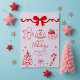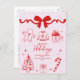 Hand plockade Doodle Bow Red Rosa jul Helg Vykort
