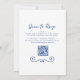 Elegant Hand plockade Doodle Gräns med QR-kod OSA Cobalt Blue Evening Wedding Reception bjudas in... En doodle i elegant designar gräns din inbjudningstext i handskrivet skript och traditionell serif-typografi, ge kortet ett unikt utseende på en bröllopsinbjudan på en kväll. Baksidan av inbjudan visningar webbadressen till bröllop och även QR-koddeltagarna kan söka efter OSA och visa all information om bröllop, inklusive menyalternativ. All text, förutom det handskrivna skriptet, kan enkelt revideras med dina egna uppgifter om anpassningsmallen.