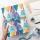 Moderna vattenfärger hand plockade färglös triangel mönster. Vit, turkos, lila och gult.