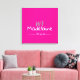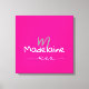 Ett monogram i ett hand plockade-teckensnitt med ditt personliga namn. Bakgrunden är rosa med ditt namn i ett modernt vitt teckensnitt. Din första är i mjuk grått färg.