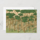 Postkort för Helgdag av skogen i hand plockade med träd och kaniner i gräs