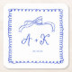 Hand plockade Fransk Blue Bröllop Monogram Underlägg Papper Kvadrat
