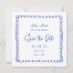 Hand plockade Fransk Square Blue Bröllop spara datum