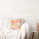 Mjuka pastelliserade färg - muterade gulter, orangar, klämmor, beige och mjuka persikor i en abstraktens geometriska hand plockade-design. Den här utformningen är funky och roligt - avslappnande och sofistikerat - Baksidan av kudden skiljer sig från framsidan.