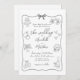 Quirky Hand plockade Whimsical Wedding bjudande. Denna konstnärliga och lekfulla design är perfekt för par att tittar att förse sin stora dag med ett kreativ, ljusare vibe. Den är formad i mjuka grått-toner och känns som ett personligt, handritat mästerverk som både är charmerande och unikt. Ett snurrande, vågigt ram med en stinkande båge gör dig uppmärksam på dina bröllop-detaljer, som presenteras i en blandning av skript och handskrivet typsnitt-stil för en avslappnad men elegant-beröring. Dekorativa skisser av ikoniska bröllop inslag, som ringar, en vågig kaka, hjärtan, en champagne flaska med glas, blommor och en "Ny gifta" bil, tillför ett trendig och ett färdigt estetiskt material. Dessa vinklade dockor ger en modern, konstnärlig fläck till designen samtidigt som den förblir sofistikerad och roligt. Baksidan har en tankfull detalj: ett handskrivet stil-monogram av initialer med känsliga hjärtan, allt i grått för ett mjukt, sammanhängande utseende. Med den här inbjudan kan du justera text, färg och information helt anpassade för att återspegla ditt personliga stil. Oavsett om det skrivs ut eller delas ut som en digital fil är det par perfektens val att hitta ett unikt sätt att meddela firande på och snyggt.
