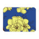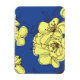 En förskönad linje teckning av gult äpple-blommar mot en ljusblå bakgrund.