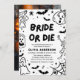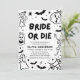 Bride eller Die 💋 💀 Redo till slö, själar? Den här handdragna svarta och vita Halloween inbjudningskort för möhippan är perfekt för den spooky brud som är allt annat än grundläggande. Med dansande skelett, spöken med cocktails, fladdermus, jack-o-lyktor och spindelnät - det är läskigt, sött och helt mördande. 🦇 Perfekt för en gotsk bachelorette, häxig möhippa eller en Till-död Do US Party. Redigerbar, snyggt och garanterad att vrida huvuden (och kanske rulla några). ✨ A måste ha för bruden som dör till party! ✨